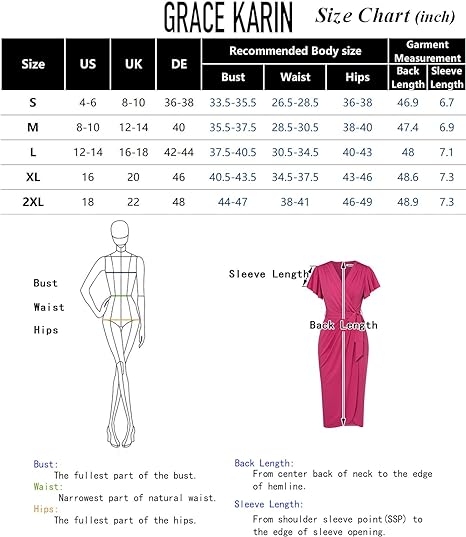 GRACE KARIN 2024 Women's Cocktail Dresses showcase elegance with a touch of flair. This V-neck wrap dress features charming ruffle sleeves, adding a playful and feminine element. Perfect for weddings and parties, the midi length exudes sophistication, while the included belt accentuates the waist for a flattering silhouette. GRACE KARIN's attention to detail and design excellence shines through in this cocktail dress, providing women with a chic and versatile option for special occasions. The combination of style and comfort makes it a standout choice for those seeking a refined and fashionable ensemble.