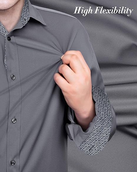 J.VER Men's Casual Long Sleeve Stretch Dress Shirt Wrinkle-Free Regular Fit Button Down Shirts