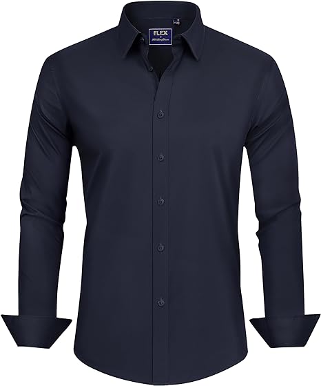 J.VER Men's Dress Shirts Stretch Stain Shield Long Sleeve Solid Formal Shirt Business Casual Button Down Shirts