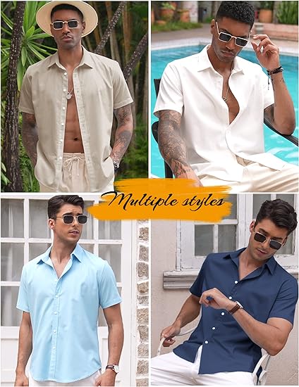 COOFANDY Men's Linen Shirts Casual Button Down Short Sleeve Summer Beach Dress Shirt
